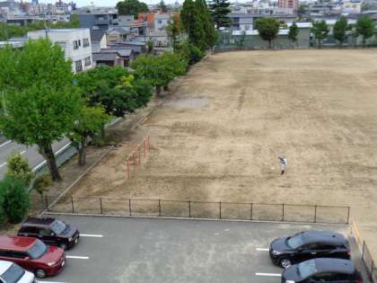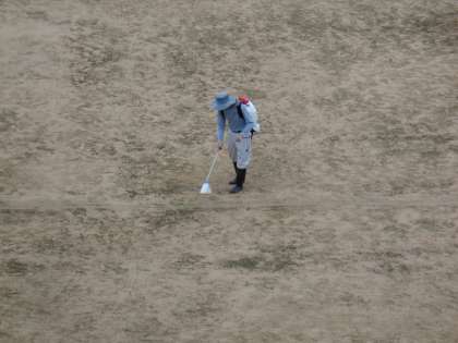 用務員さんがグラウンドの整備をしてくれました。28日の体育大会に向けて、除草剤をまいてくれました。いつもありがとうございます。