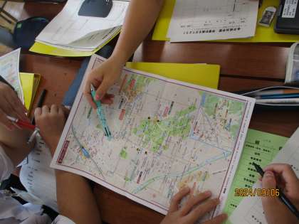総合的な学習の時間に、金沢校外学習の班別コースを検討しました。班はクラス関係なく、体験活動の希望にそった班になっています。今日は、どこの施設やお店で体験するか決めました。