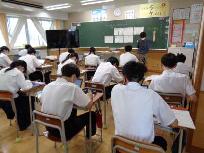 3年生の授業です。英語と社会です。落ち着いて取り組んでいます。