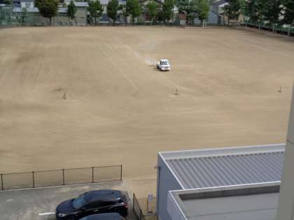 体育大会が近づいてきたので、用務員さんがグラウンドの整備をしました。グラウンドがきれいになりました。ありがとうございます。
