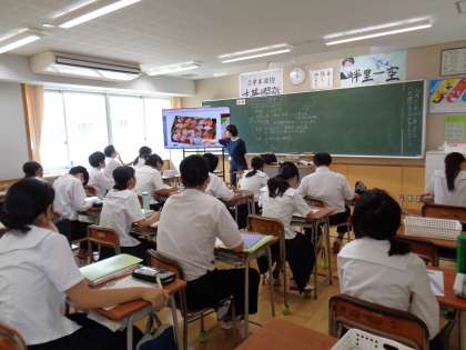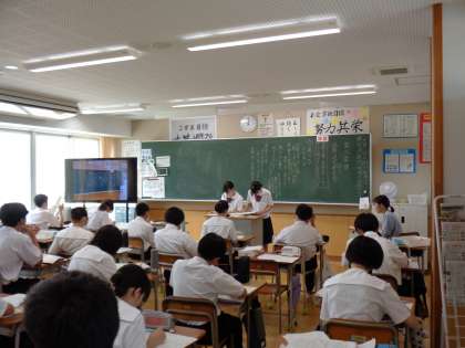 技術家庭科と国語です。技術家庭科では、魚調理についてを学習していました。国語では、発表会をしています。