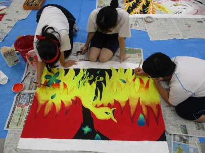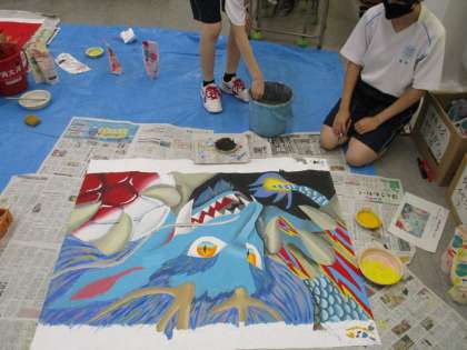 今日の体育大会デコレーション進度状況です。どの団もいよいよ仕上げの段階になってきました。これからが腕の見せ所です。ステキなデコレーションを期待しています!