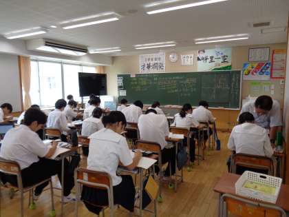 数学と社会です。数学は各自で問題に取り組んでいました。社会では、先生の話に耳を傾けていました。