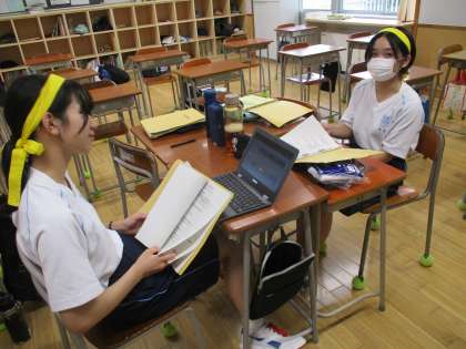 今日の体育大会団リーダー活動の様子です。いよいよ明日から全体練習が始まるので、各団打ち合わせやダンスの見直しをしていました。実行委員は暑い中、放送席の確認も行いました。