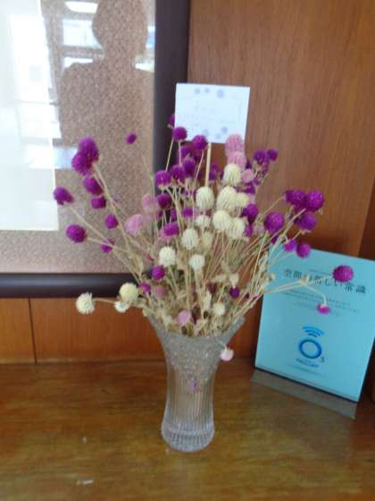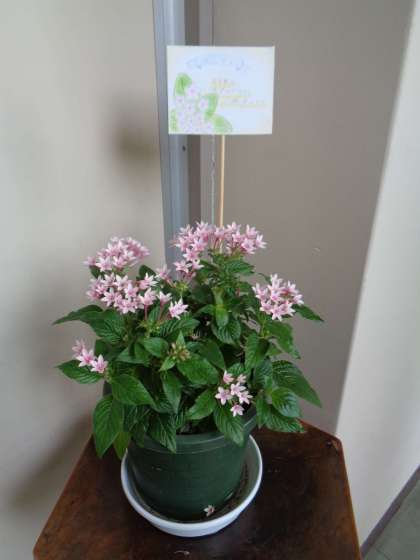 校内に飾ったお花にカードを作ってもらいました。花鉢が豪華になりました。
