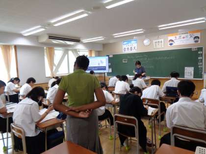 学活と英語です。学活では、合唱曲のイメージをふくらませていました。英語は、ALTの先生も一緒に学習していました。