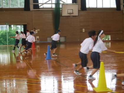 9/19(木)体育大会の学年競技の練習が始まりました。今日は競技の説明を担当の先生から聞き、練習に取り組んでいました。まだまだ始めたばかりでコツがつかめていない様子でした。これからチームワークを高めて、がんばってほしいです。(画像は1年生の様子です。)