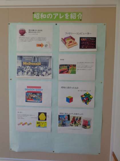 3年生の掲示です。昭和の懐かしい物について調べています。