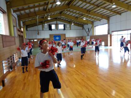 最後の団活動です。各場所で練習をしています。この後、全校グラウンドに出て団演技のリハーサルを行います。
