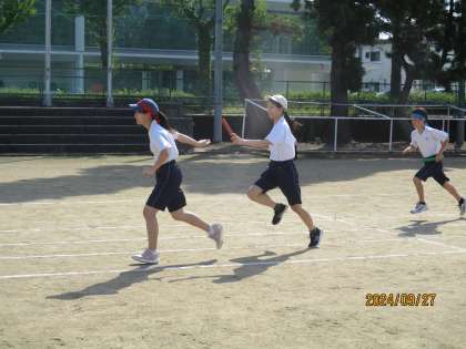 今日は選手制種目の練習を行いました。リレーでは、実際にトラックを使用し、バトンパスの練習を行いました。