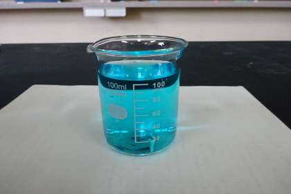 塩化銅水溶液は、きれいな青色をしています。(写真上)