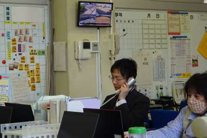 今日は、2年生女子と3年生の電話連絡の日です。皆さんの元気な声を聞いて、担任の先生はとても嬉しそうです。また、電話で課題で分からないところを質問している人が何人もいました。家庭での学習ですが、真剣に取り組んでいますね。
