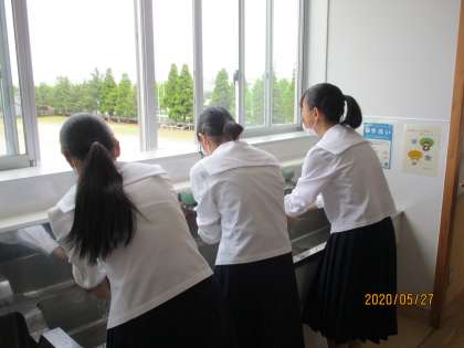 順序よく手洗いを行い、手を洗った後は、弁当の準備をしていました。