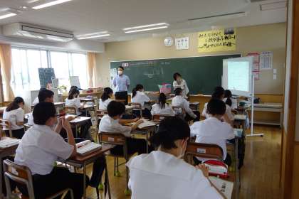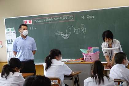 今日は、ALTの先生と一緒に授業をしました。スクリーンに映された単語の発音を練習しました。英語の発音に慣れてきたようです。