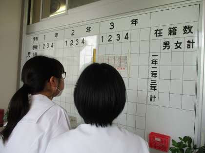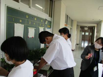 6月から全員がそろい、係活動も開始しました。担任の先生から仕事の内容を聞いて、明日の連絡や提出物の場所等を確認していました。