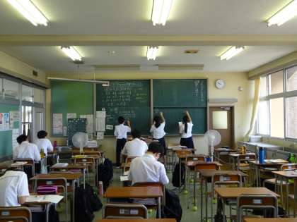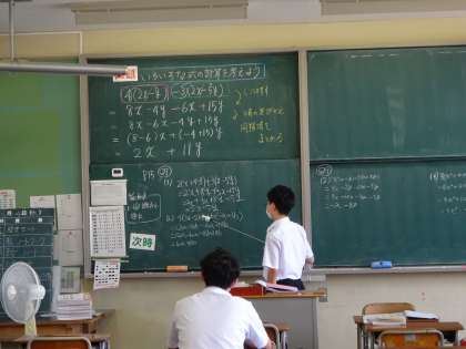 2年生の数学です。少人数で行っています。分かりやすくみんなの前で説明しています。