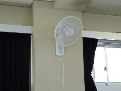 今日は、真夏日になる予報が出ています。特別教室へ移動している2、3年生は扇風機を複数置いてしのいでいます。昨日、3年生が使っている視聴覚室に扇風機を新しく取り付けました。少し過ごしやすくなりますね。大切に使いましょう。