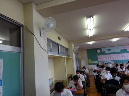 特別教室に扇風機が設置されました。夏休みが短くなりますが、涼しく過ごせそうですね。