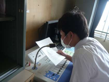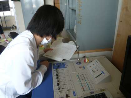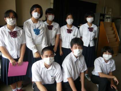 開校記念日にあたり、学校の歴史クイズやいいところ紹介を拡大生徒会執行部が放送で行いました。また、生徒会長は「大中生全員で力を合わせて幸せな学校にしましょう」と全校生徒にエールを送りました。