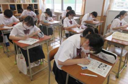 新聞記事を読み、自分の意見や感想を書く「NEWSWEB」を行いました。生徒たちには、情報を読み取って、自ら考え判断する力を養ってほしいと思います。