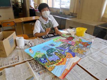 美術部は1年生が7名入部し、大変賑やかになりました。それぞれの部員がコンクールに向けて、制作を頑張っています。