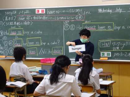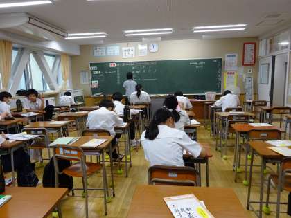 2年生の英語です。英語は教室と少人数教室に分かれて学習しています。