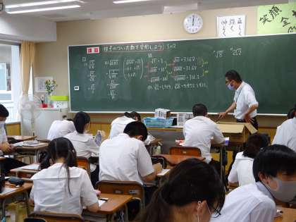 3学年は数学で、電卓を使って学習しています。根号を使った計算も電卓を使うと簡単ですね。