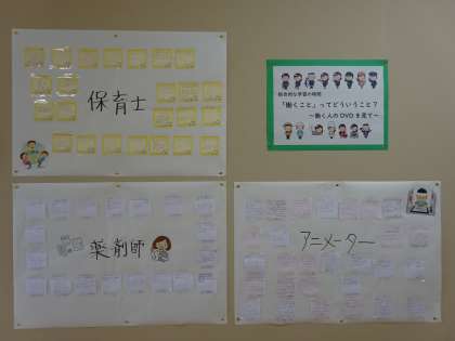 今年度は残念なことに、社会に学ぶ「14歳の挑戦」が中止になりました。そこで、2年生では働く人のDVDを鑑賞しました。写真は、DVDを視聴した感想です。