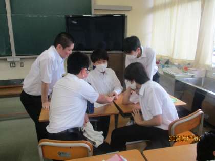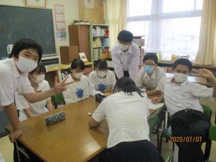 3年生は、各団ごとに体育大会の短距離走やリレーの走順を考えました。団長を中心に話合いをしたり、じゃんけんをしたり、工夫して決めました。
