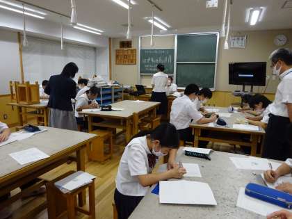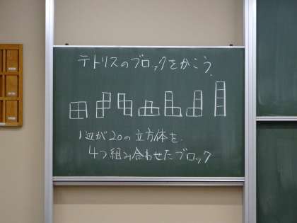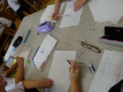 テトリスのブロックを書こうを課題に取り組みました。グループで相談しながら物差しを使って丁寧に書きました。