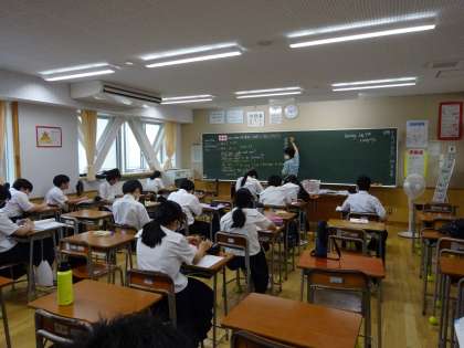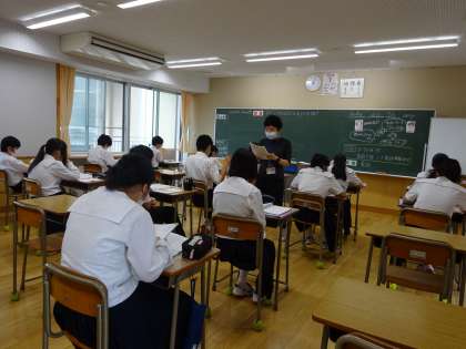 2年生は少人数で英語の授業をしています。今日の課題は、「電話で依頼したり誘ったりしてみよう」です。