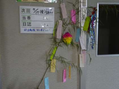 昨日は七夕でした。作法室前に茶道部が作った七夕が飾られています。