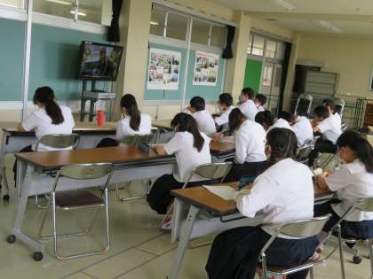 先週に引き続いて、グループに分かれて「仕事図鑑」の動画を視聴しました。今回視聴したのは「ペットショップの店員」「テーマパークのスタッフ」「刑事」の3つ。一般の人からは見えないところでの工夫や苦労を知り、働くことの厳しさややりがいを感じました。