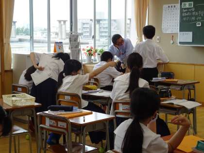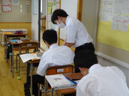 数学では、計算の仕方を教え合っています。友達に教えてもらうとお互いの理解が深まります。