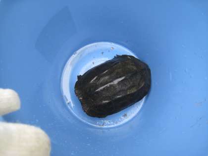 今朝、登校してきた2年生男子数名が「学校前の溝に亀がいます!」と教えてくれたので、行ってみると体調20cmほどの亀が先日来の大雨で流されてきたのか、狭い側溝で右往左往。すぐに捕獲し、学校近くを流れるいたち川に逃がしました。亀さん、元気でね〜!
