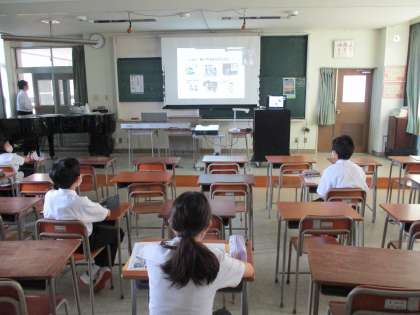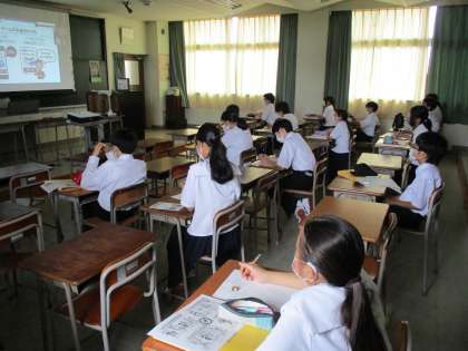 ケーブルテレビ富山から講師による「ネットトラブル防止教室」を行いました。今回は、リモートで講座を受け、生徒は真剣にメモを取りながら話を聞いていました。