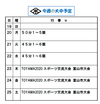 今週の予定
