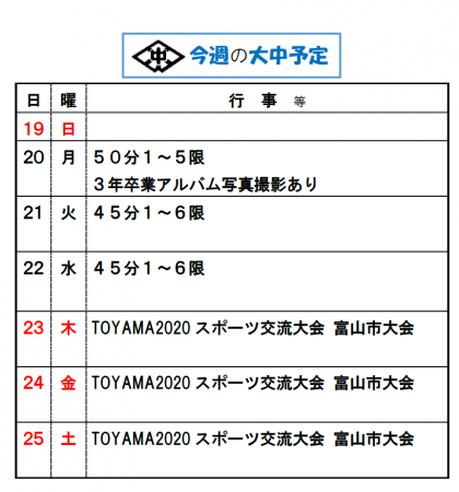 今週の予定