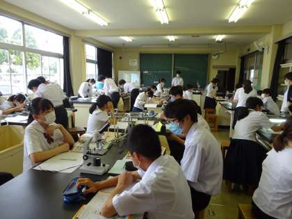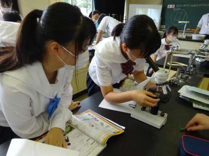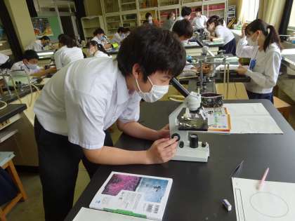 生物のからだが細胞でできていることを、顕微鏡で観察しています。今日は、オオカナダモの葉を観察してスケッチしました。