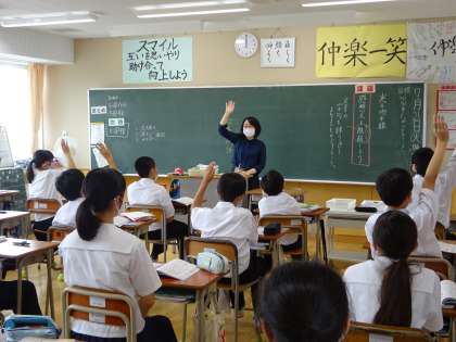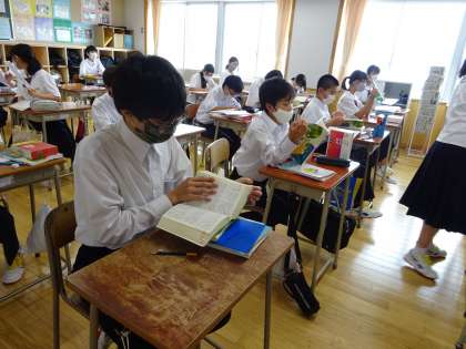 今日の授業は、感想文の書き方、推敲について学習しています。本文を引用して書くと書きやすいようです。