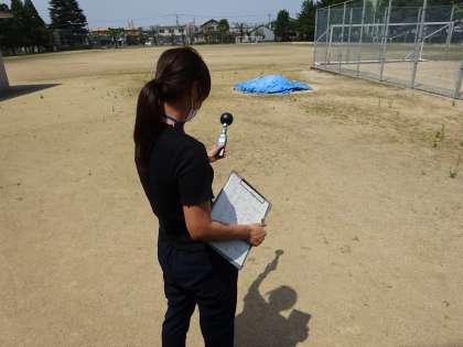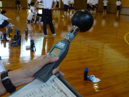 今日はとても暑い日です。学校では、熱中症対策として熱中症指数を測定しています。