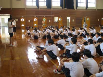 今日の5限に学年生徒会が企画した、ドッヂボールをしました。暑い体育館の中でしたが、扇風機を回し、水分補給をとりながら行いました。