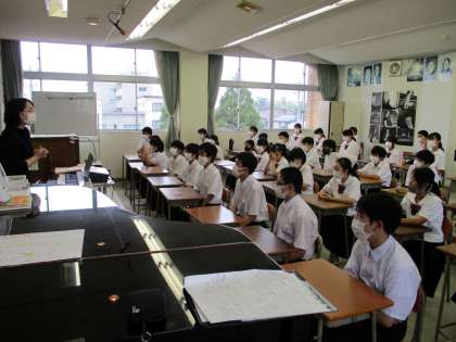 学年集会を開き、先生から1学期を振り返ってと、夏休みに向けて「学習」、「生活」等の話をしました。生徒は真剣に話を聞いていました。