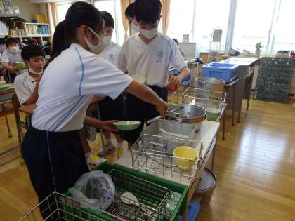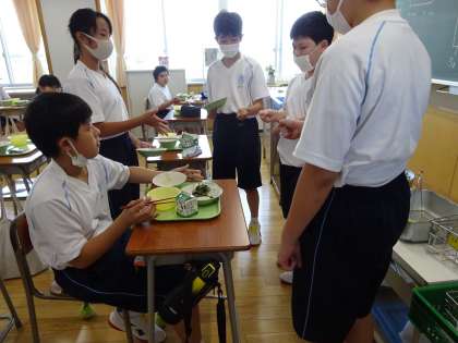久しぶりの給食です。仲良くジャンケンをしておかずを分けています。