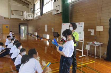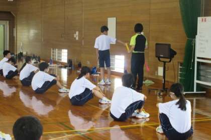 保健体育科では、体育大会に向けて、リレーの練習をしています。今日の課題は「格好良くバトンを渡そう!」です。互いを信頼して、声をかけながらバトンを渡す練習中です。