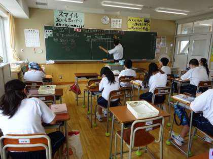 数学では、等式を成り立たせるも仁値について考えました。全員で九九を確認していました。もちろん九九は完璧です。保健体育の後の授業だったので、水分補給やタオルで汗を拭きながらがんばっていました。