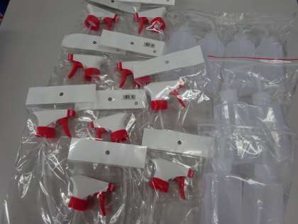 学校の薬剤師さんからアルコールとアルコールを入れる容器等をいただきました。大切に使わせていただきます。ありがとうございました。