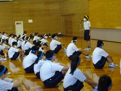 今日から全校の団活動開始です。体育館、誠道館、視聴覚室に分かれて行いました。