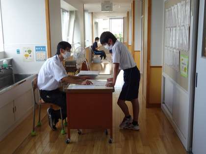今日は1学期の通知表をもらいました。担任から個別にもらいました。2学年の様子です。