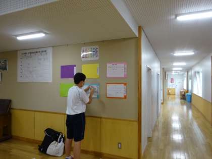 今日から9月です。生徒会の掲示板の張り替えをしています。